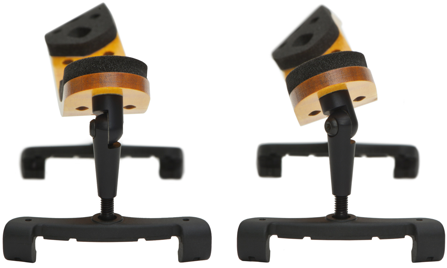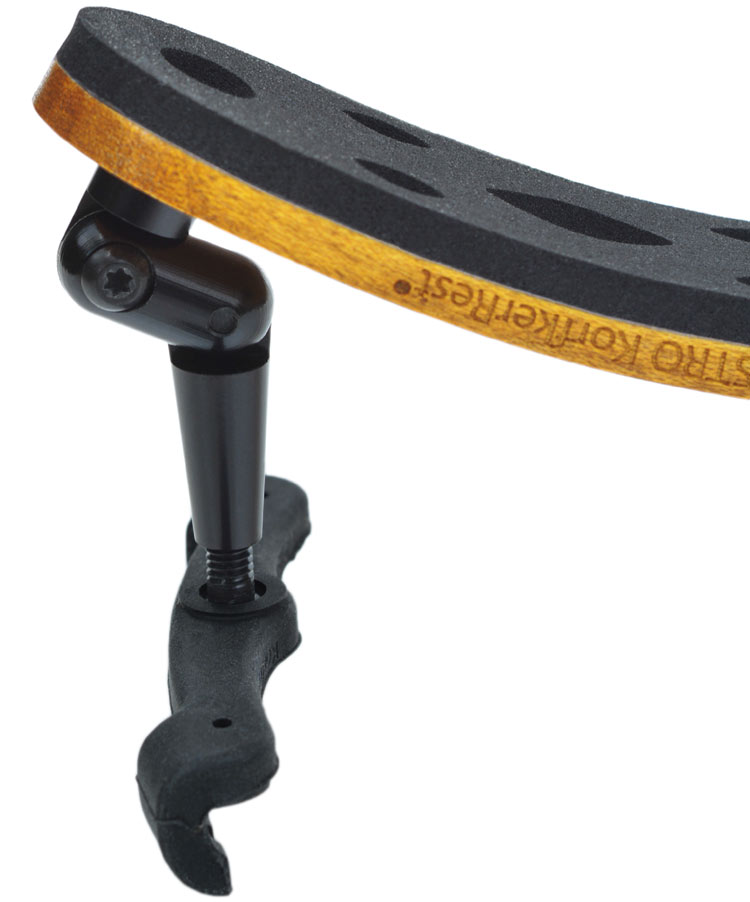 When using two short rubber foot assemblies, the PIRASTRO KorfkerRest® will be so low that its wooden bridge may touch the back of the violin. In this case some bend must be removed from the wooden bridge to avoid damage.