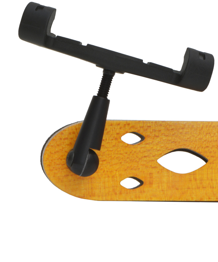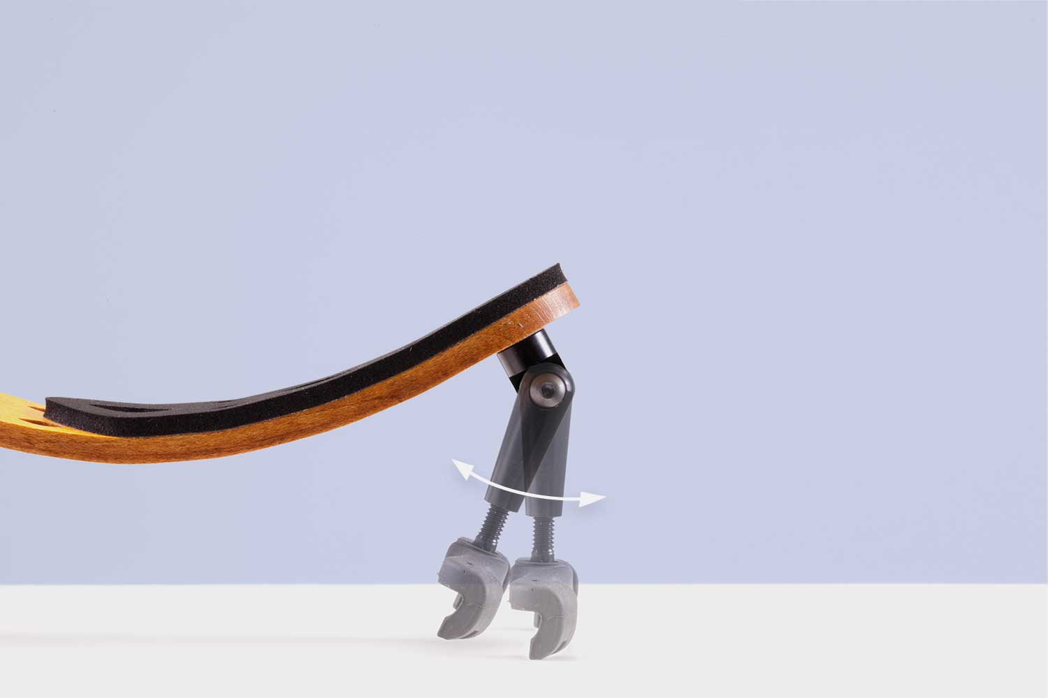 The height of the PIRASTRO KorfkerRest® can be adjusted by turning the rubber feet into or out of the thread of the hinge joint.